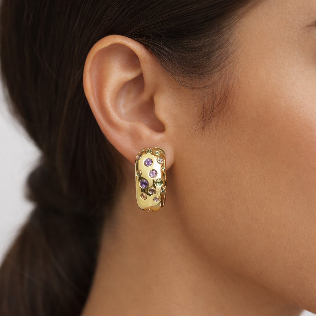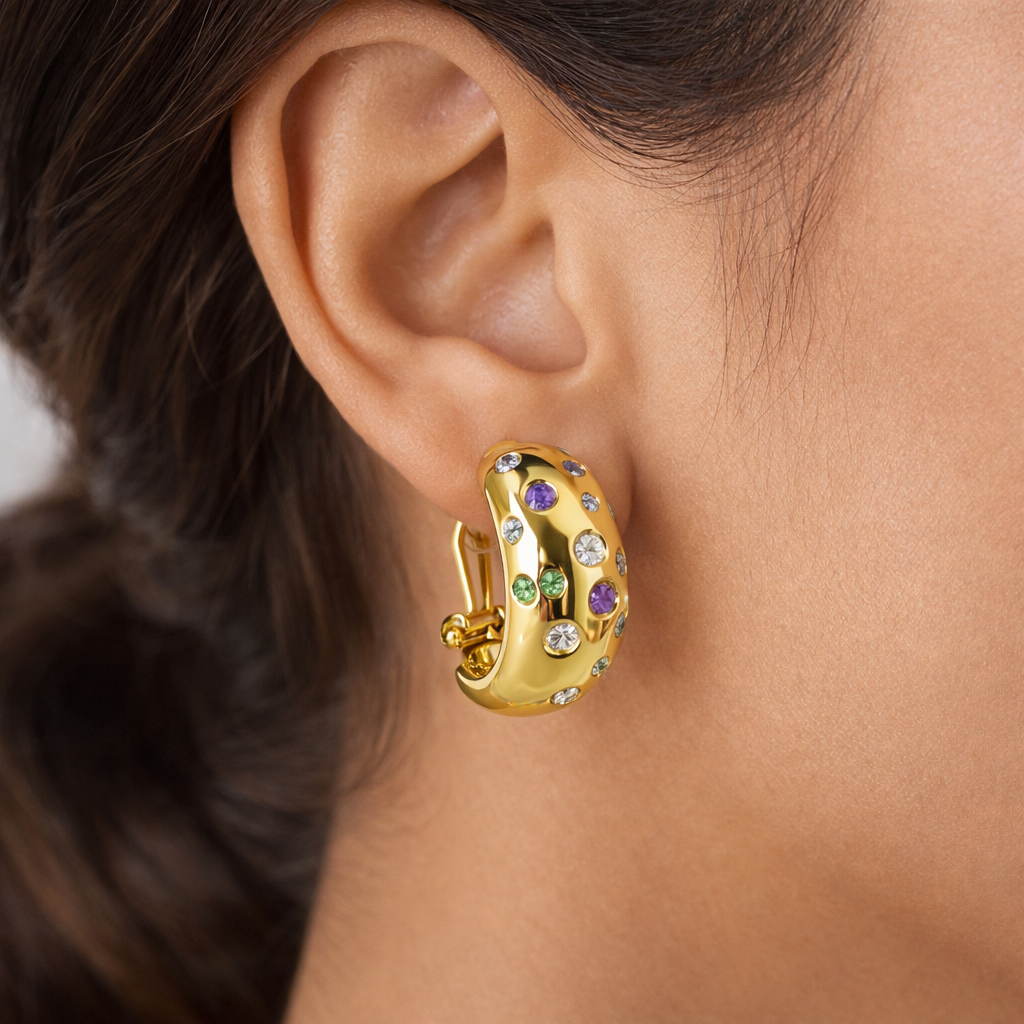 • جريء وراقي في الوقت نفسه، يجمع هذا التصميم بين الذهب المصقول ولمعان الكريستال الموزع لإطلالة عصرية ملفتة.