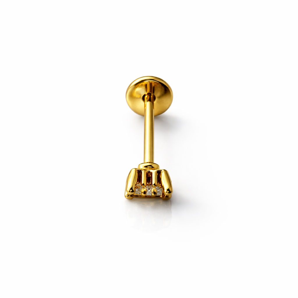 A delicate clover-inspired piercing stud designed to add a subtle sparkle to your everyday look. Featuring four brilliant stones set in a refined gold-plated frame, this piece combines elegance, comfort, and durability. Crafted with a sterling silver 925 bar, it is gentle on the skin and ideal for long-term wear without irritation.